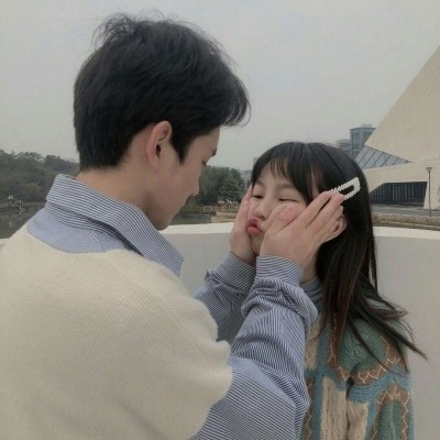 白色情侣面对占立撩头发意境头像/奶酪